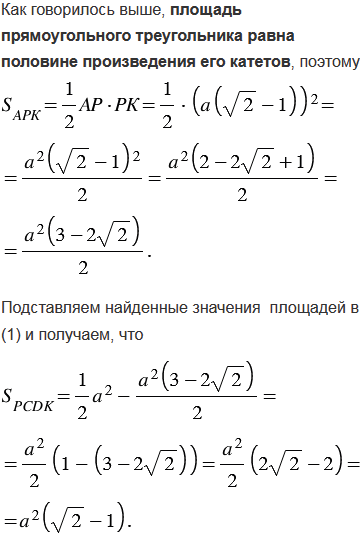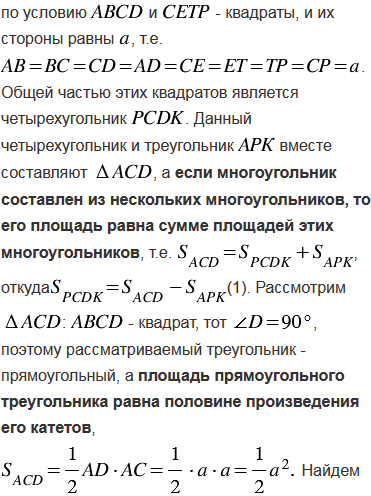 имеют одну общую вершину, причём сторона одного из них лежит на диагонали другого. Найдите площадь общей части этих квадратов.