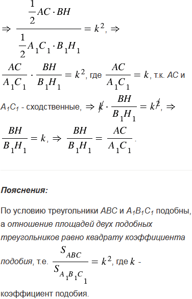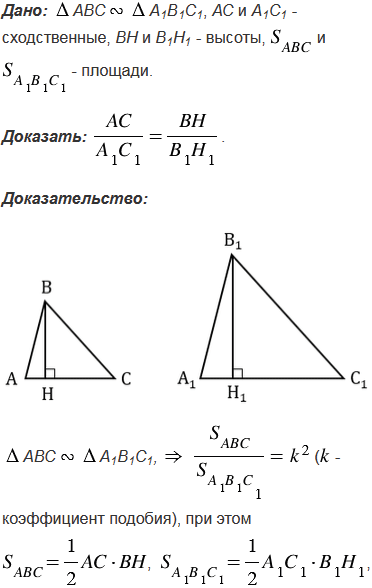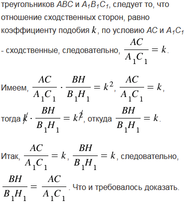 Докажите, что отношение сходственных сторон подобных треугольников равно отношению высот, проведенных к этим сторонам.