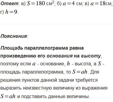- основание, h - высота, а S - площадь параллелограмма. Найдите: а) S, если