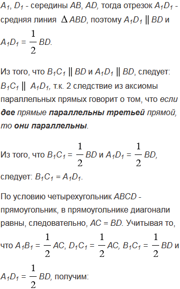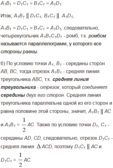 Докажите, что четырехугольник - ромб, если его вершинами являются середины сторон: