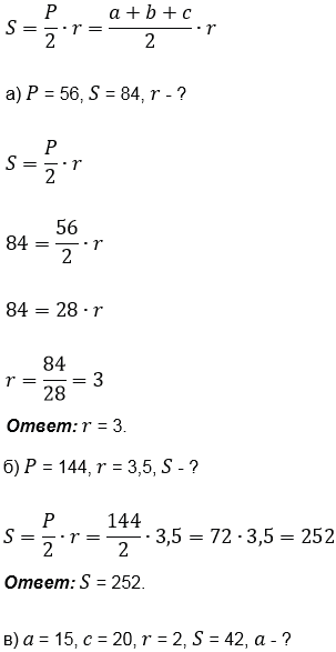 Пусть a, b, c стороны треугольника, P периметр треугольника, r радиус вписанной окружности, S площадь треугольника. Найдите:
