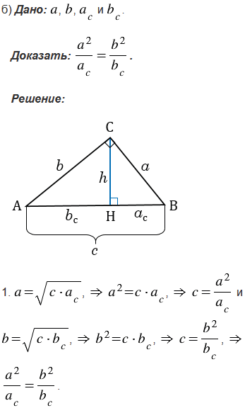 В данной задаче использованы следующие обозначения для прямоугольного треугольника АВС с прямым углом С и высотой СН: ВС = , СА = , АВ = , СН = , АН = , НВ = .