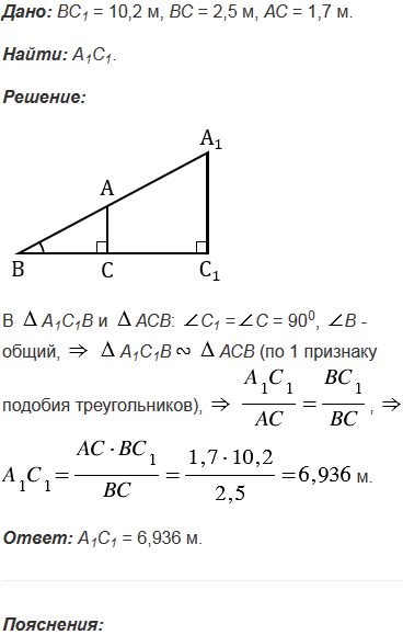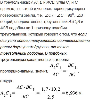 Длина тени дерева равна 10,2 м, а длина тени человека, рост которого 1,7 м, равна 2,5 м. Найдите высоту дерева.