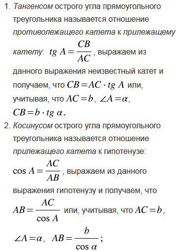 2. Как найти косинус и тангенс острого угла прямоугольного треугольника.