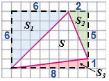 Квадрат составлен из треугольника с площадью S, трех прямоугольных треугольников с площадями S1, S2, S2 и квадратика с площадью S3, тогда