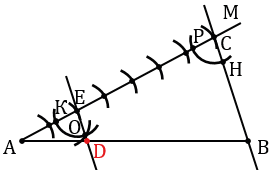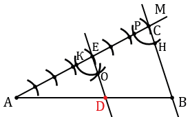 Чертим отрезок АВ и проводим какой-нибудь луч АМ, не лежащий на прямой АВ.