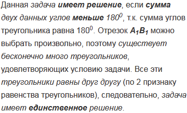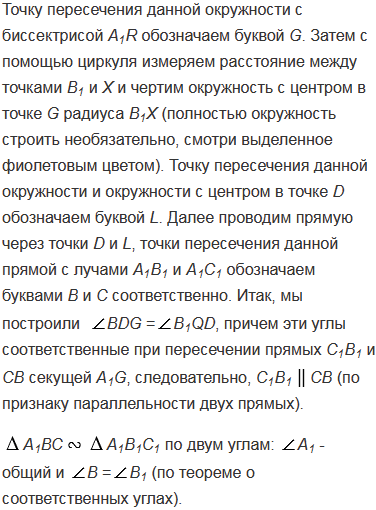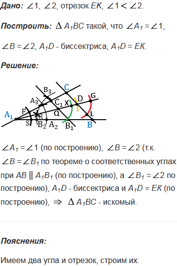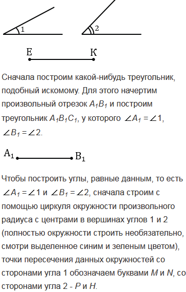 Постройте треугольник по двум углам и биссектрисе, проведенной из вершины меньшего из данных углов.
