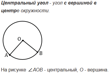 Какой угол называется центральным углом окружности?