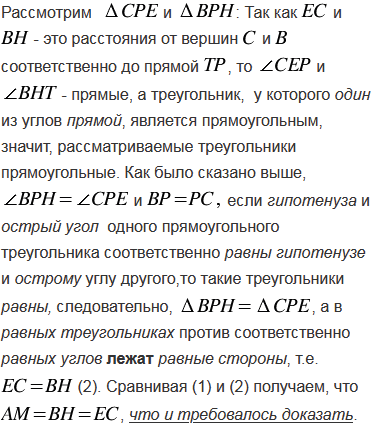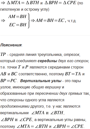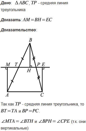 Докажите, что вершины треугольника равноудалены от прямой, содержащей его среднюю линию.