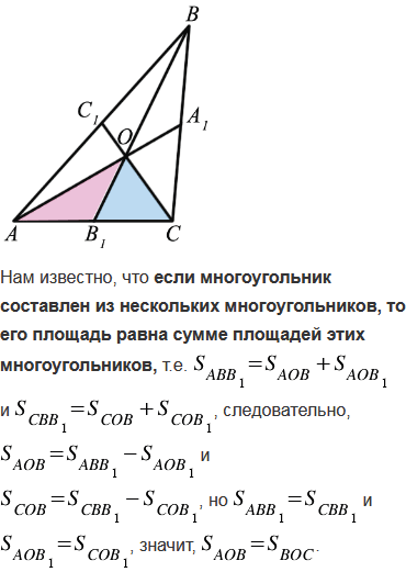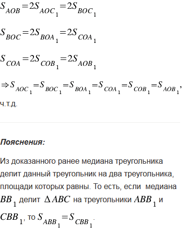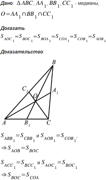 Докажите, что медианы треугольника разбивают его на шесть треугольников, площади которых попарно равны.
