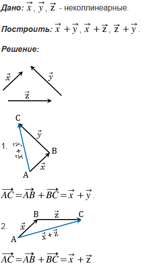 Начертите попарно неколлинеарные векторы , , и постройте векторы + , + , + .