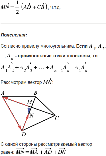 Точки М и N - середины диагоналей АС и BD четырёхугольника ABCD. Докажите, что