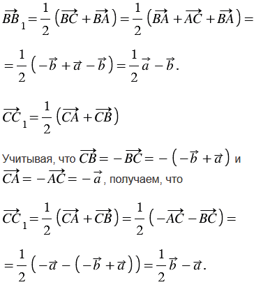Отрезки АА1, ВВ1 и СС1 - медианы треугольника АВС. Выразите векторы , , через векторы = и = .
