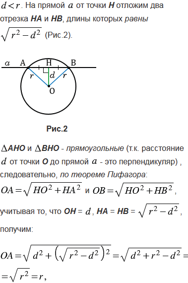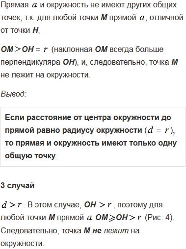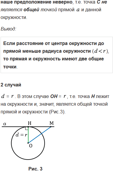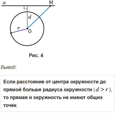 Исследуйте взаимное расположение прямой и окружности в зависимости от соотношения между радиусом и расстоянием от ее центра до прямой. Сформулируйте полученные выводы.