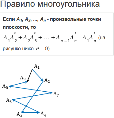В чем заключается правило многоугольника сложения нескольких векторов?