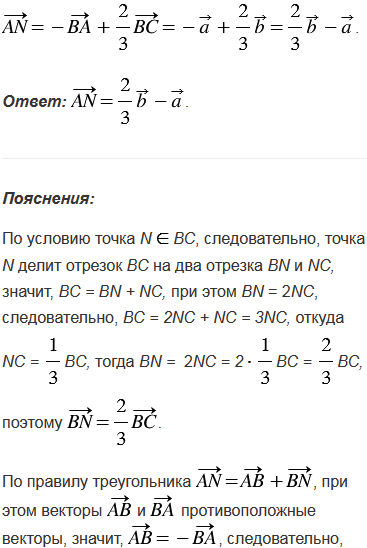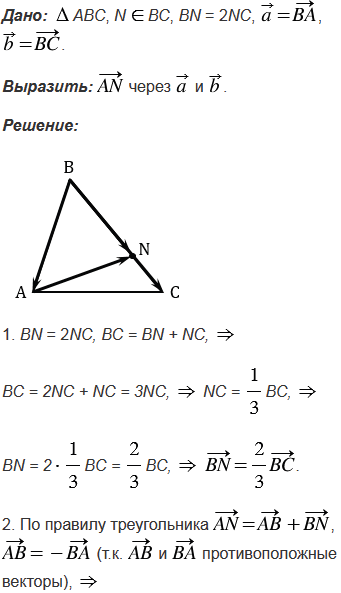 На стороне ВС треугольника АВС отмечена точка N так, что ВN = 2NC. Выразите вектор