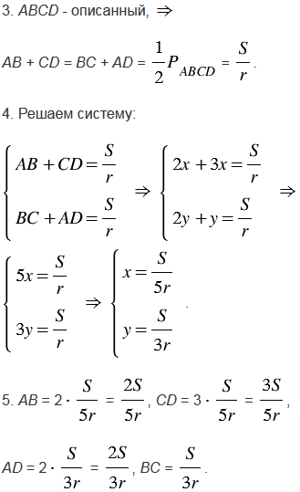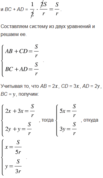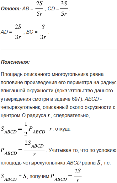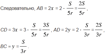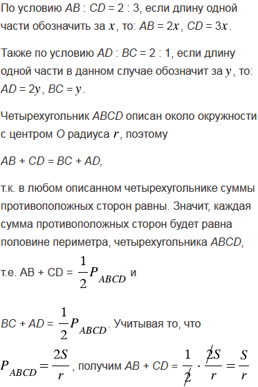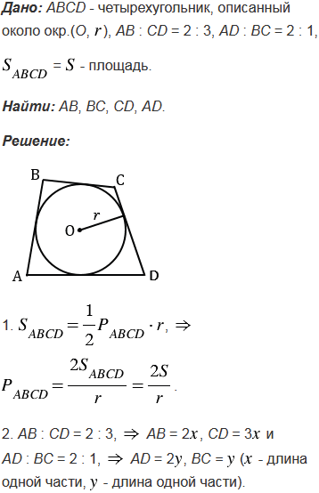 . Известно, что АВ : СD = 2 : 3, АD : ВС = 2 : 1. Найдите стороны четырехугольника, если его площадь