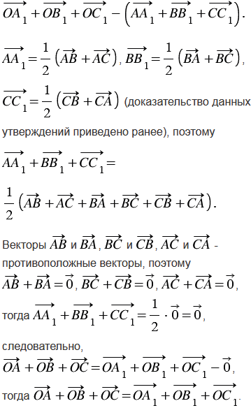 Отрезки АА1 , ВВ1 и СС1 - медианы треугольника АВС, О - произвольная точка. Докажите, что .