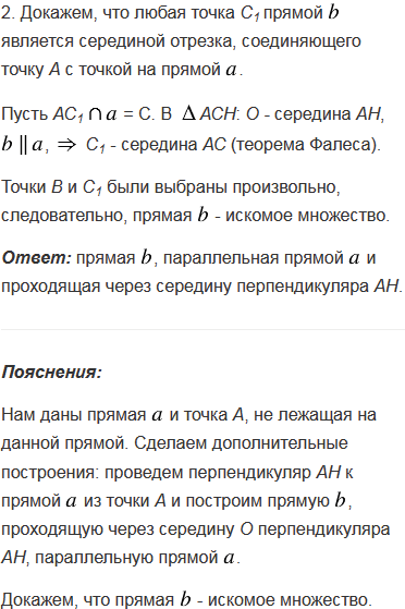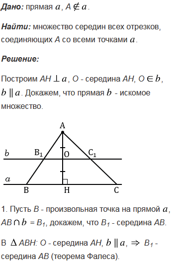 Найдите множество середин всех отрезков, соединяющих данную точку со всеми точками данной прямой, не проходящей через эту точку.