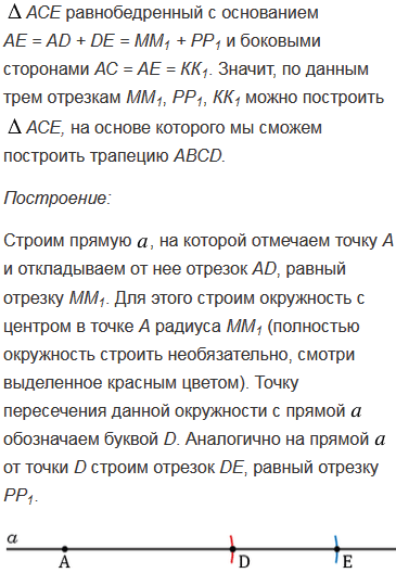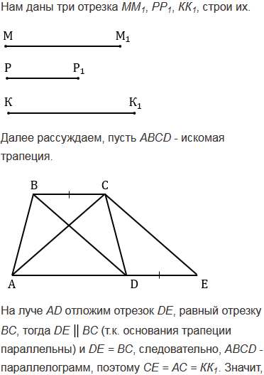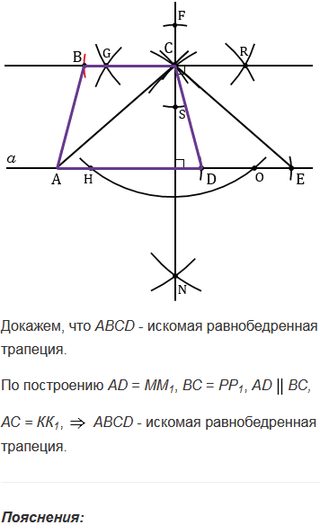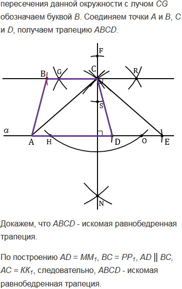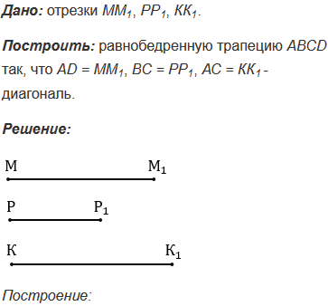 Постройте равнобедренную трапецию по основаниям и диагонали.