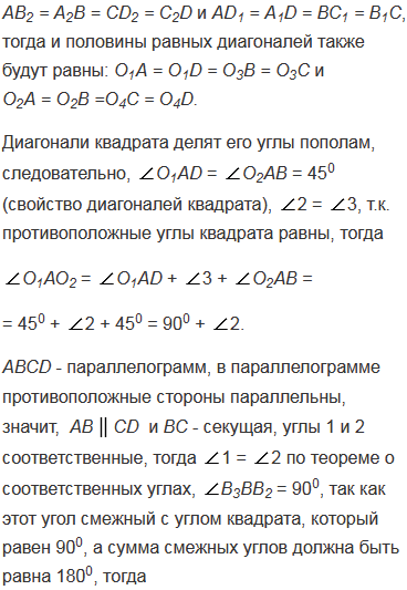 На сторонах параллелограмма вне его построены квадраты. Докажите, что точки пересечения диагоналей этих квадратов являются вершинами квадрата.