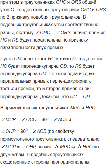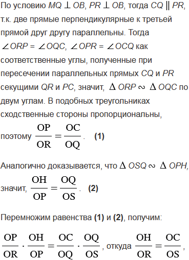 Из точки М внутренней области угла АОВ проведены перпендикуляры МР и МQ к его сторонам ОА и ОВ. Из точек Р и Q проведены перпендикуляры РR и QS соответственно к ОВ и ОА. Докажите, что RSОМ.