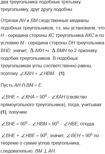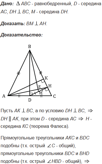 В равнобедренном треугольнике АВС из середины D основания АС проведен перпендикуляр к стороне ВС. Пусть М - середина отрезка . Докажите, что ВМ АН.