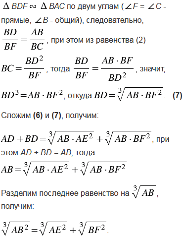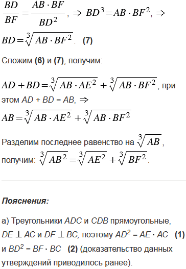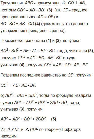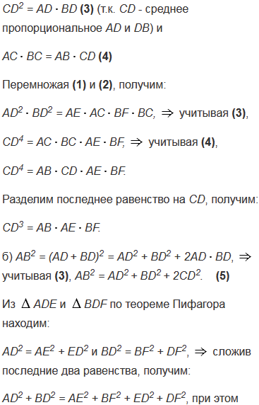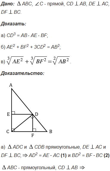 Из вершины прямого угла С прямоугольного треугольника АВС проведен перпендикуляр СD к гипотенузе, а из точки D - перпендикуляры и DF к катетам АС и ВС. Докажите, что: