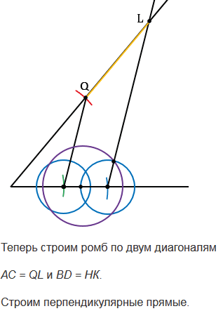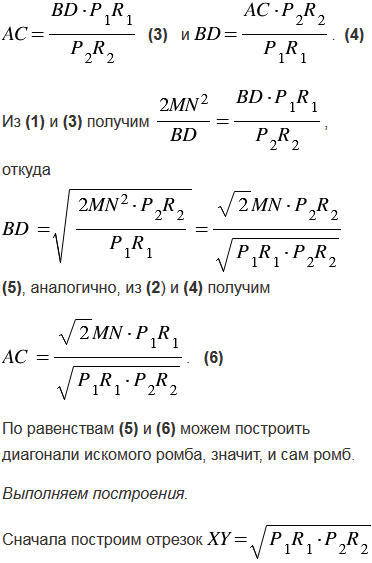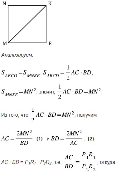 Постройте ромб, площадь которого равна площади квадрата, если известно, что отношение диагоналей этого ромба равно отношению данных отрезков.
