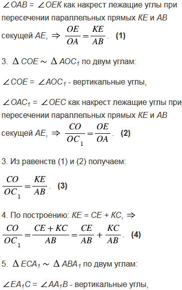 Точки С1, А1 и В1 лежат соответственно на сторонах АВ, ВС и АС треугольника АВС, причём отрезки АА1, ВВ1 и СС1 пересекаются в точке О. Докажите, что (теорема Ван-Обеля).