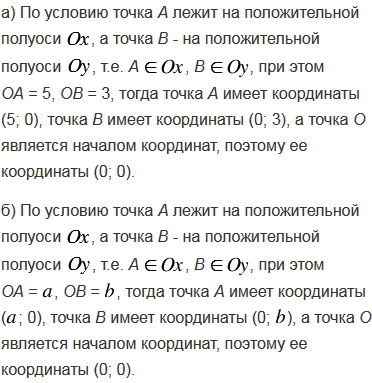 Точка А лежит на положительной полуоси , а точка В - на положительной полуоси . Найдите координаты вершин треугольника АВО, если: