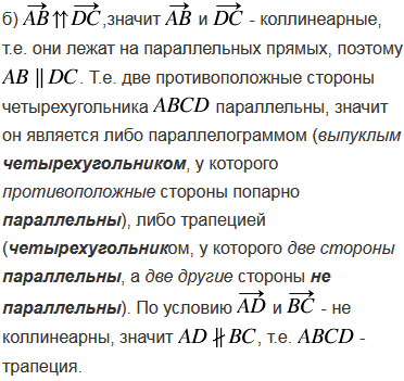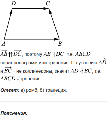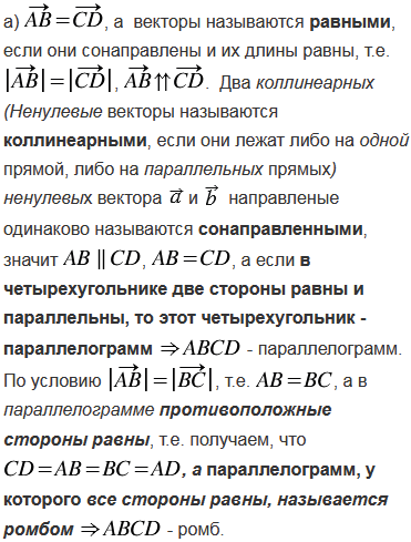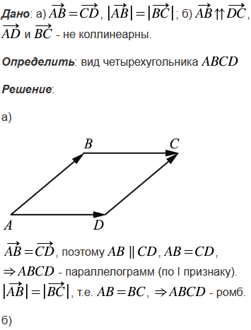 Определите вид четырёхугольника ABCD, если: а) = и = ; б) , а векторы и не коллинеарны.