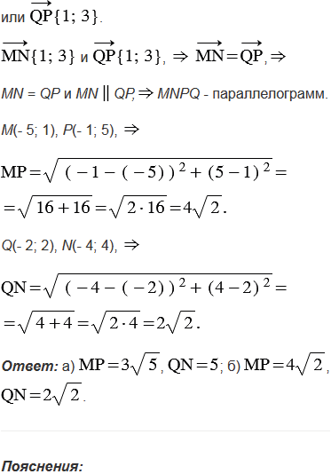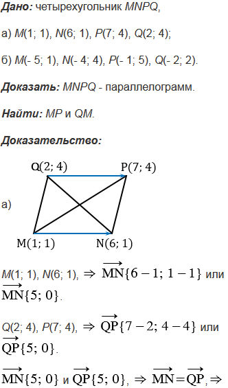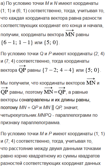 а) М(1; 1), N(6; 1), Р(7; 4), Q(2; 4);