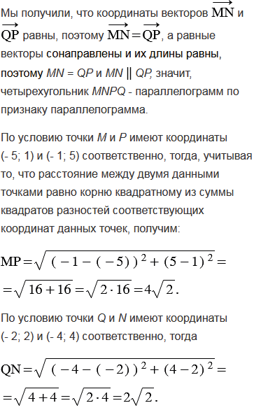 Докажите, что четырехугольник МNРQ является параллелограммом, и найдите его диагонали, если: