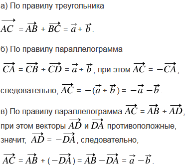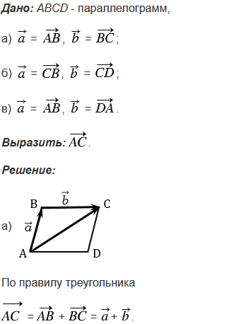 Дан параллелограмм АВСD. Выразите вектор через векторы и , если: а) = , = ; б) = , = ; в) = , = .