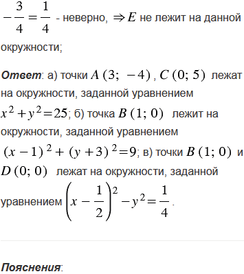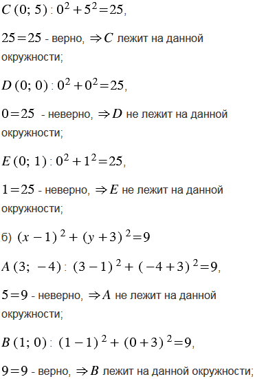 Какие из точек А(3; -4), В(1; 0), С(0; 5), D(0; 0) и Е(0; 1) лежат на окружности, заданной уравнением: