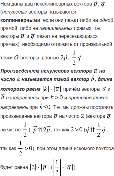 , начала которых не совпадают, и отметьте какую-нибудь точку О. От точки О отложите векторы, равные 2