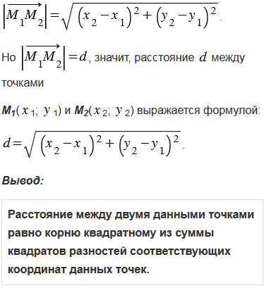 Выведите формулу для вычисления расстояния между двумя точками по их координатам.