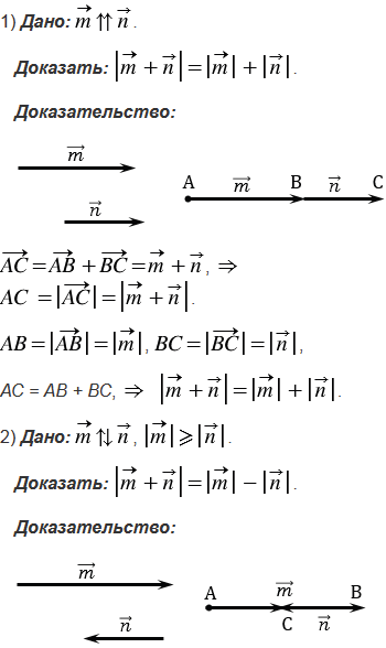 Докажите, что если векторы и сонаправлены, то , а если и противоположно направлены, причем , то .