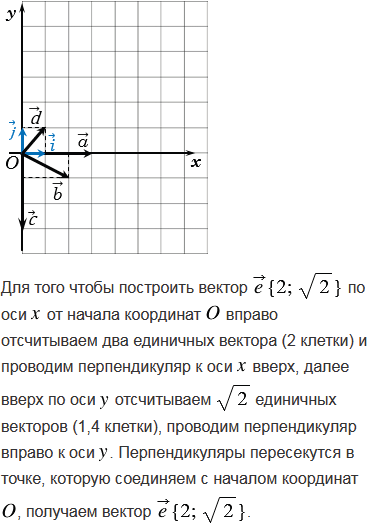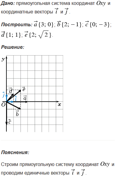 Начертите прямоугольную систему координат и координатные векторы и . Постройте векторы с началом в точке О, заданные координатами , , , , .