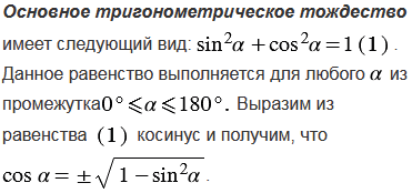 Вспомните, что называется синусом и косинусом угла и какой вид имеет основное тригонометрическое тождество.