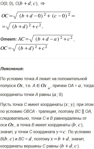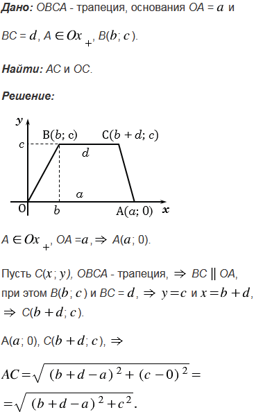 Найдите сторону АС и диагональ ОС трапеции ОВСА с основаниями ОА =