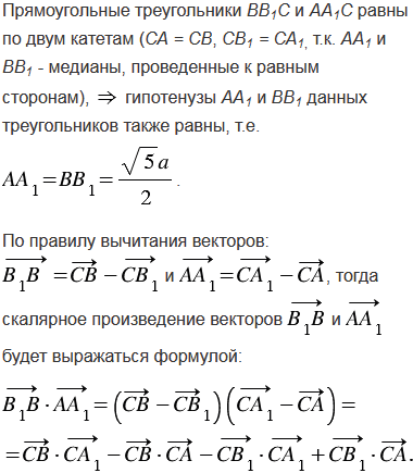 В прямоугольном равнобедренном треугольнике проведены медианы из вершин острых углов. Найдите острый угол между этими медианами.