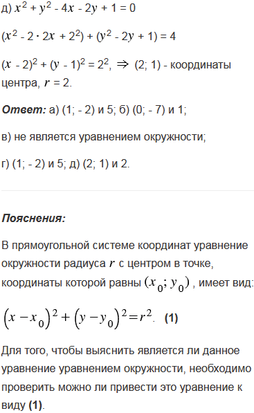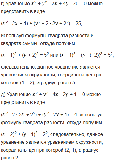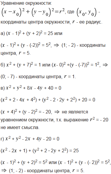Выясните, какие из данных уравнений являются уравнениями окружности. Найдите координаты центра и радиус каждой окружности.