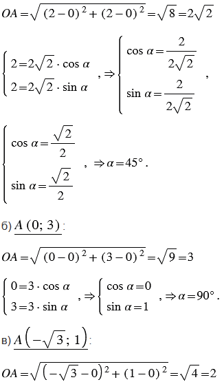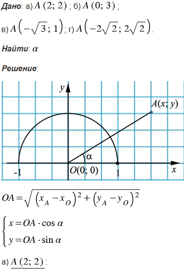 Найдите угол между лучом ОА и положительной полуосью , если точка А имеет координаты: