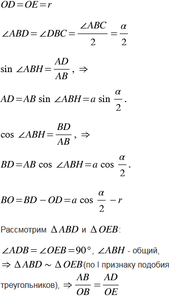 ; в) в равнобедренный треугольник с боковой стороной