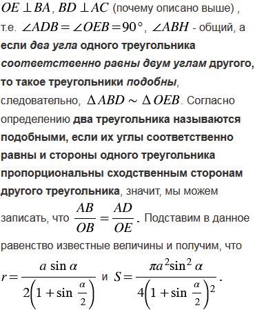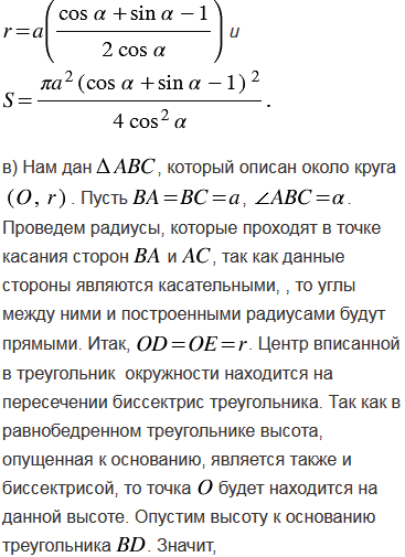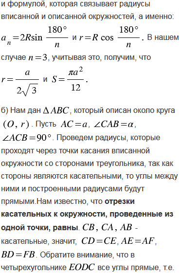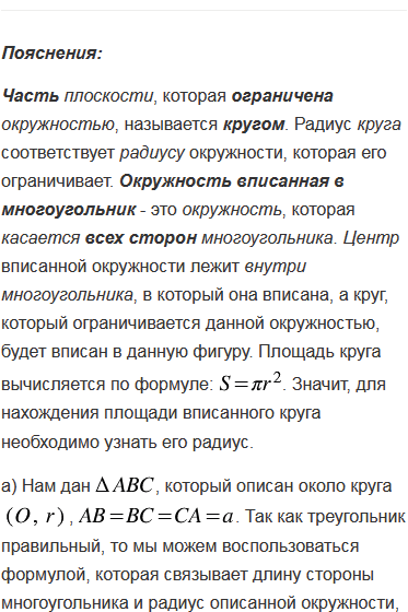 Найдите площадь круга, вписанного: а) в равносторонний треугольник со стороной