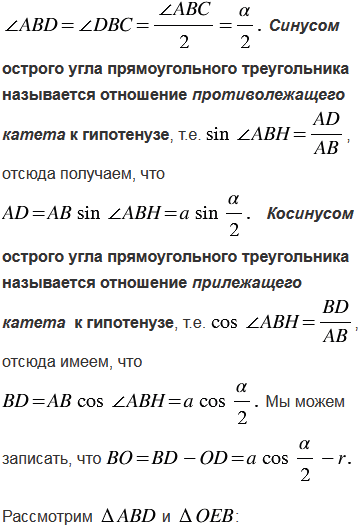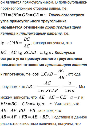 и прилежащим к нему острым углом