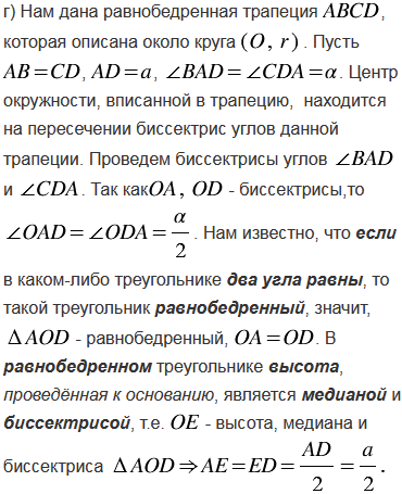 , противолежащим основанию; г) в равнобедренную трапецию с большим основанием