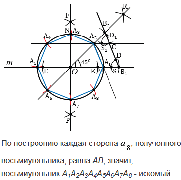 Постройте правильный восьмиугольник, сторона которого равна данному отрезку.